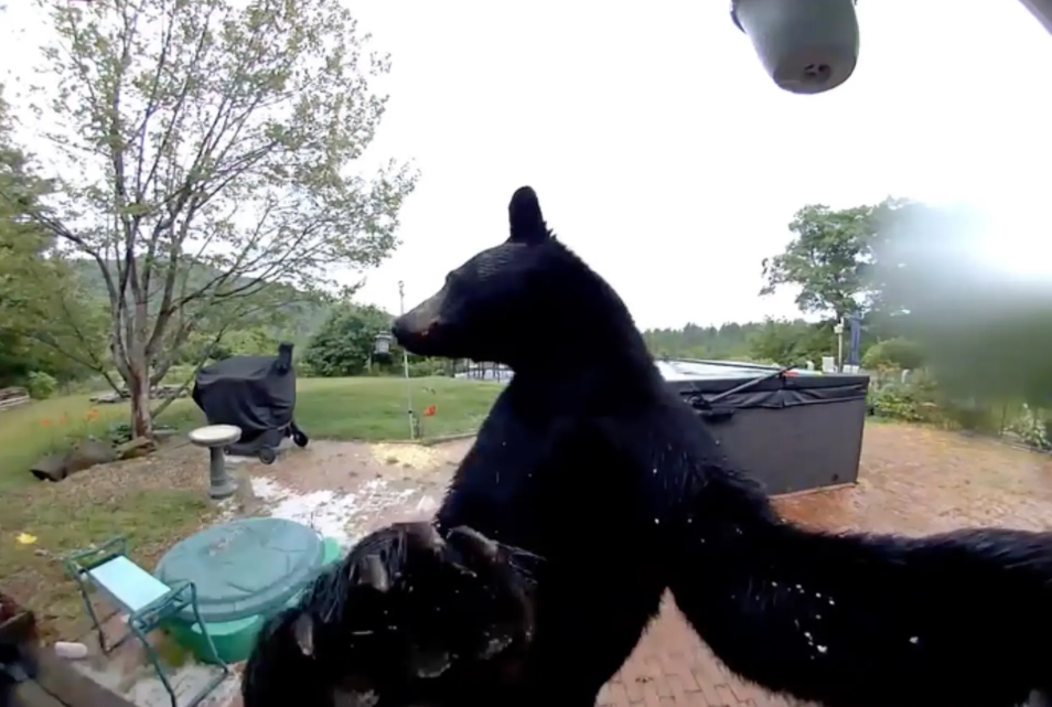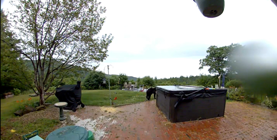 На записи с камеры видеонаблюдения видно, как зверь сначала осматривает патио, а затем подходит к звонку Ring и обнюхивает его. После этого медведь поднимается на задние лапы и нажимает когтистой лапой на кнопку звонка, заглядывая в окно, будто в ожидании ответа от жителей.