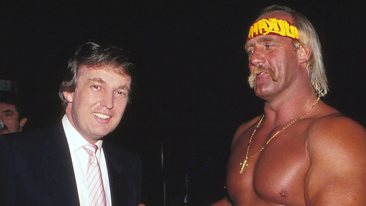 Между тем в Telegram-канале "Bild на русском" написали о других подробностях выступления Халка. Как выяснилось, он вышел на сцену в Милуоки и разорвал на себе футболку с возгласом "Make America Great Again". После этого рестлера пригласили на финальное собрание в Мэдисон-сквер-гарднер в Нью-Йорке. Хоган размахивал флагом и назвал соперников Трампа "преступниками, бездельниками, накроторговцами, коррумпированными политиками". Также в канале напомнили, что Трамп и Хоган были знакомы с 80-х годов прошлого века. Рестлерские бои проходили рядом с Trump Plaza, а Трамп часто посещал поединки, говорится в заметке.
