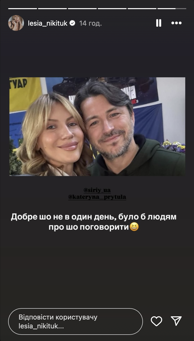 В своем Instagram Никитюк показала архивные кадры с Притулой. А в подписи, не изменяя своему чувству юмора, оставила остроумную реакцию.