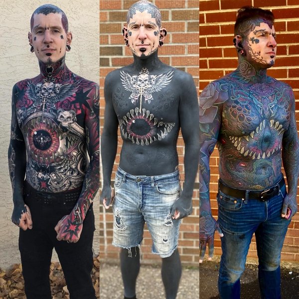 Канадец Реми, который покрыл татуировками практически 97% своего тела, кроме лица и ладоней рук, теперь наносит новые рисунки в несколько слоев, пишет Mirror.