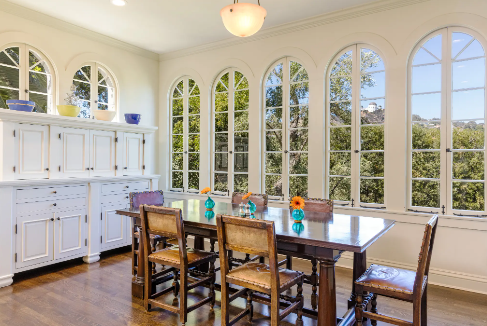 К услугам владельца шесть спален, 10 ванных комнат, четыре камина, большой винный погреб и чайный домик. Из поместья открывается вид на обсерваторию Гриффит. На территории есть сады и бассейн с каскадными фонтанами.