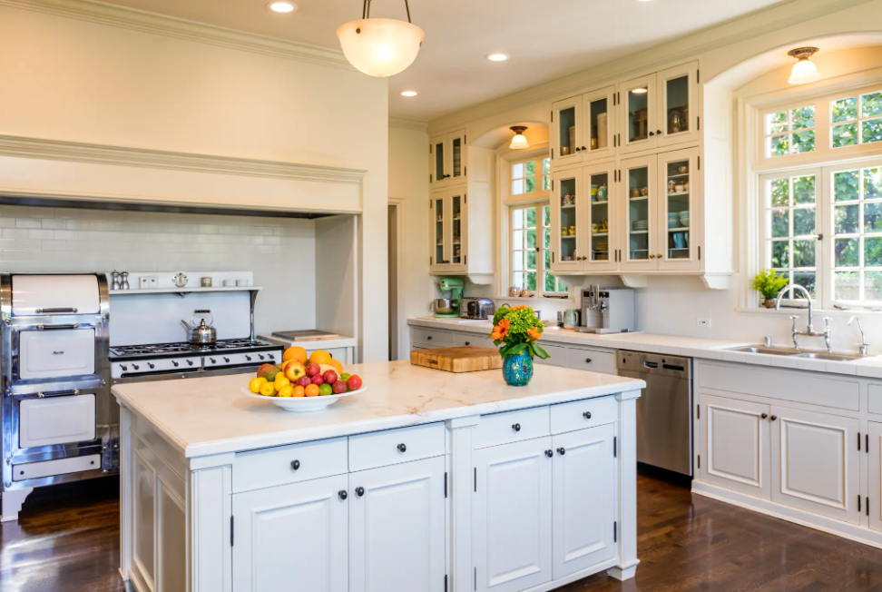 Дом отреставрировали и обновили, сохранив деликатную лепнину, обшивку, зоны отдыха и арочные французские двери.