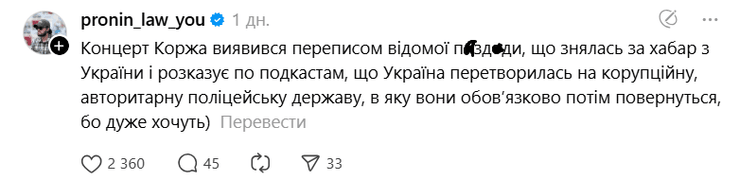 В первый день полномасштабного вторжения российских войск в Украину Корж призывал к миру и осудил бомбардировку суверенного государства. Однако он не назвал Россию агрессором.