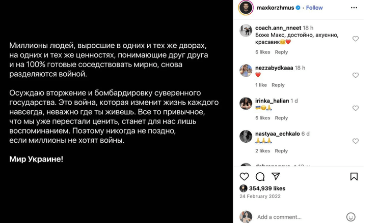 Макс Корж призывал к миру в Украине | Фото: Instagram maxkorzhmus
