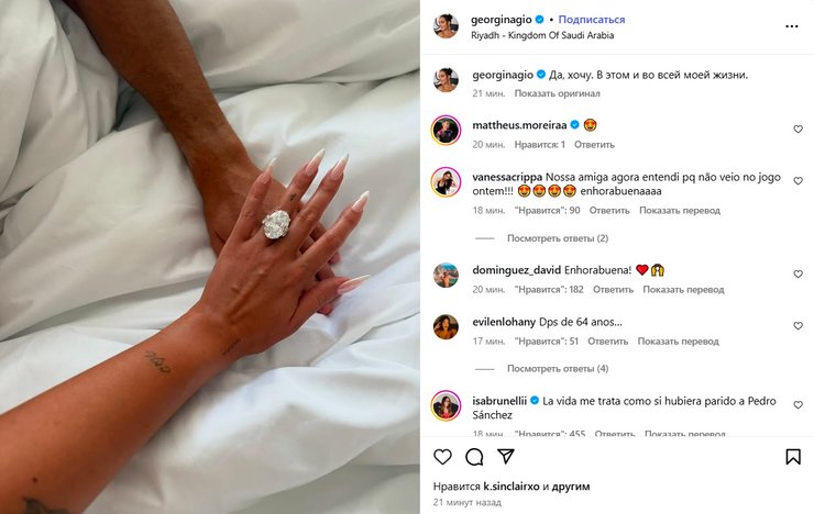 40-летний Криштиану Роналду, португальский футболист, нападающий и капитан саудовского клуба «Ан-Наср» и сборной Португалии, наконец позвал свою девушку Джорджину Родригес замуж.