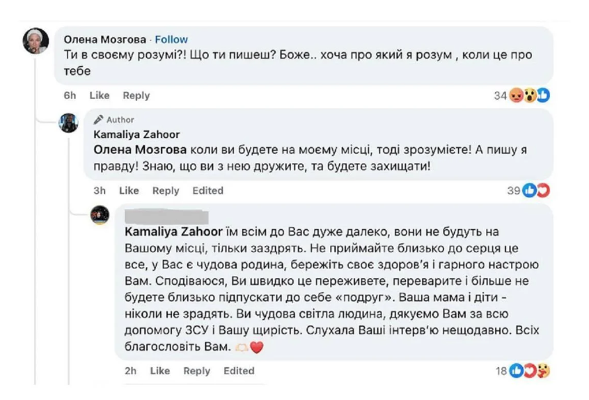 Камалия не осталась в стороне, намекнув на личные связи последней с той самой женщиной, о которой шла речь. "Когда вы будете на моем месте, тогда и поймете! А я пишу правду! Знаю, что вы с ней дружите и будете защищать", — ответила она.