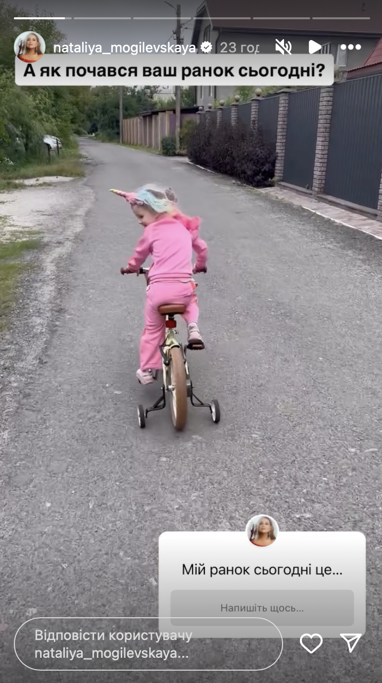 Украинская певица Наталья Могилевская показала, как проводит время со своей младшей дочкой Софией. Девочка каталась на велосипеде в сопровождении звездной мамы.