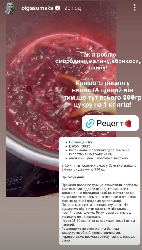 Ольга Сумская поделилась рецептом ягодного варенья | Фото: Instagram