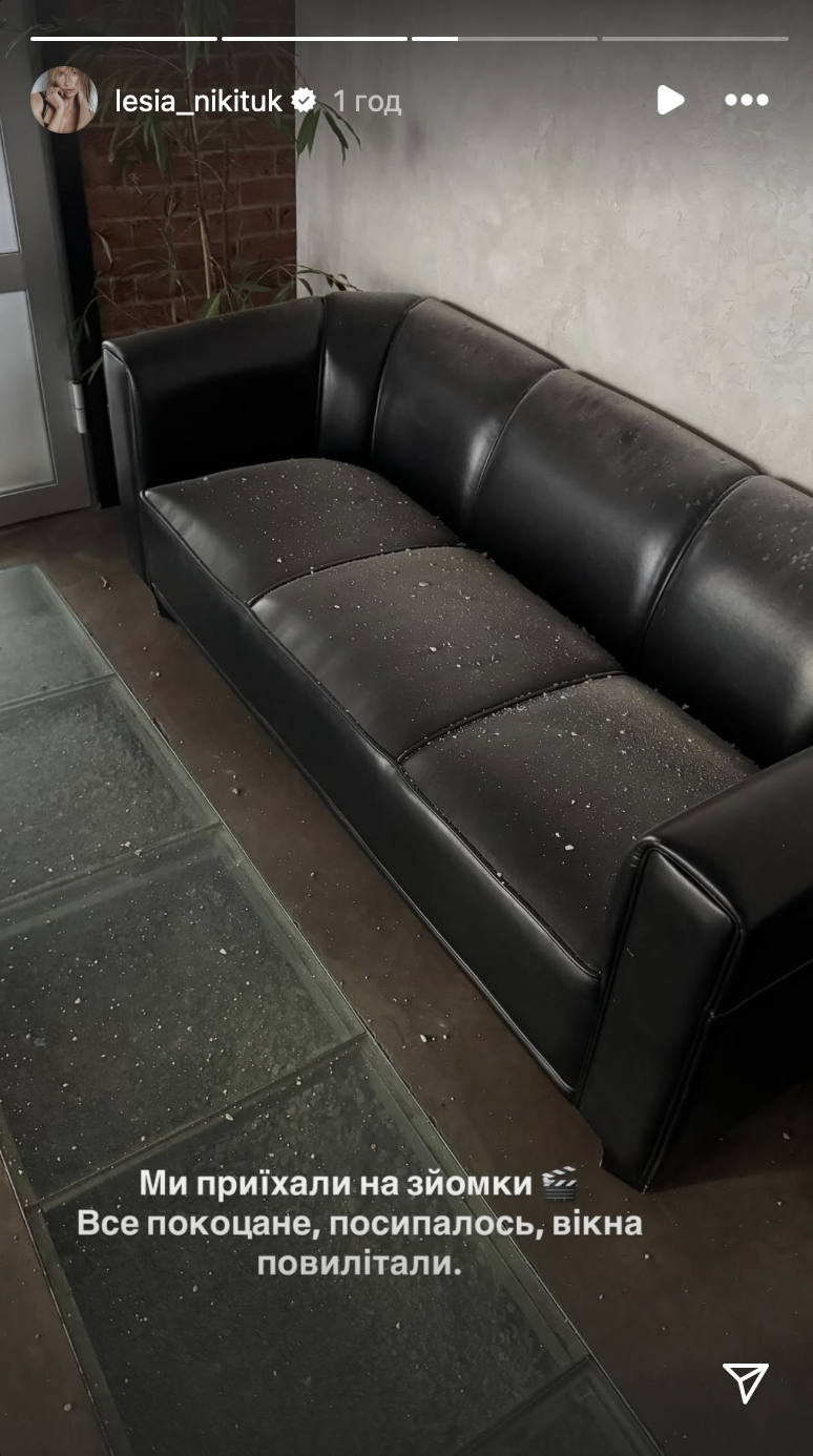 Уже утром ведущая приехала на работу, вероятно, на съемки шоу "Кто сверху?". Студия также пострадала в результате российской атаки.