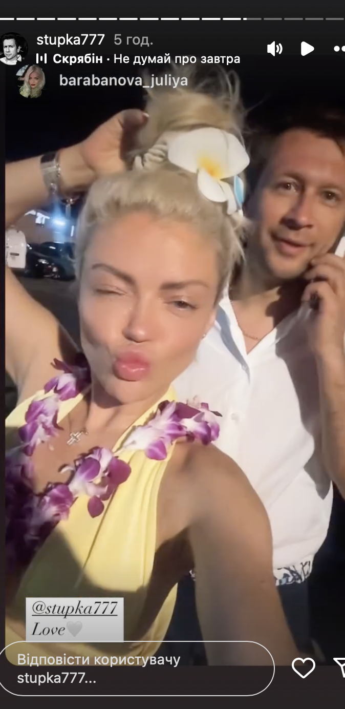 Внук Богдана Ступки подарил имениннице большой букет роз. Далее было путешествие пары на Гавайи, которое актер подарил девушке и показал это в Instagram.