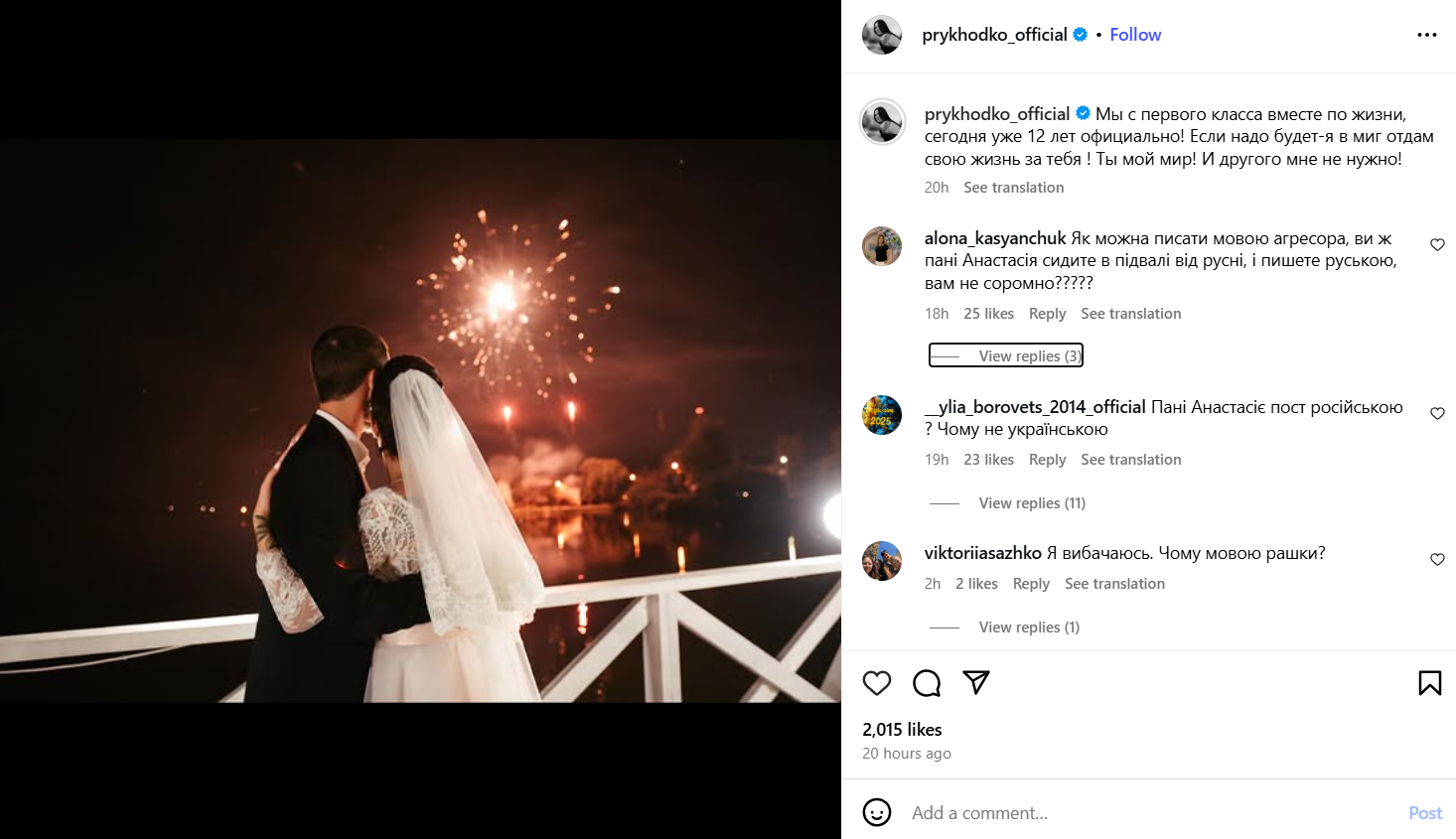 Отметим, что певица перешла на украинский язык на своих страницах в социальных сетях с начала полномасштабного вторжения, то есть в 2022 году. С тех пор она пыталась делать публикации на украинском.
