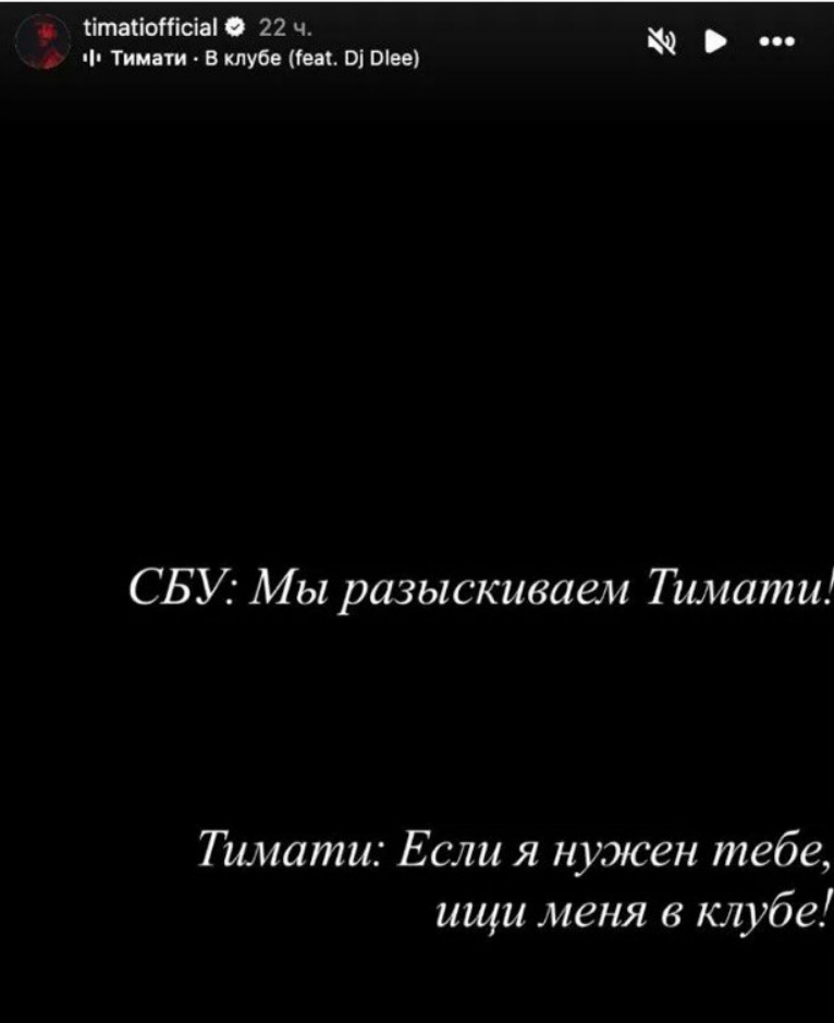 "СБУ: Мы разыскиваем Тимати! Тимати: Если я нужен тебе, ищи меня в клубе!"