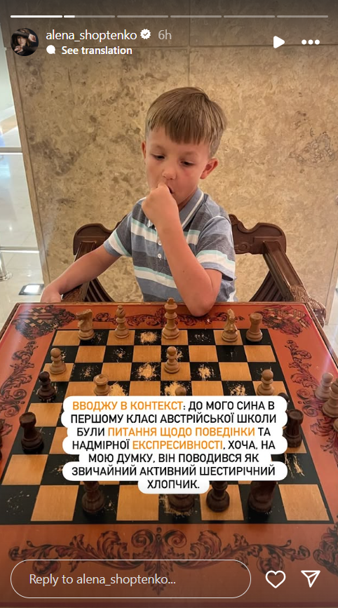 Сейчас Шоптенко отмечает положительные изменения в поведении сына: он стал более сфокусированным и спокойным. Она также отметила, что украинские дети обычно более эмоциональные и темпераментные, чем австрийские, поэтому процесс адаптации за рубежом может быть непростым.