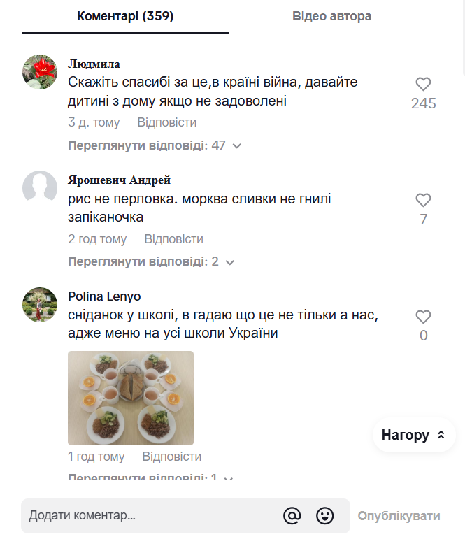 Показанное в роликах вызвало оживленную дискуссию в комментариях. Некоторые заподозрили автора во лжи, мол, в учебных заведениях давно не используют металлическую посуду, как показано на видео, а рацион гораздо разнообразнее. Школьница записала отдельное видео на своей странице в TikTok, чтобы ответить на негативные отзывы, которые ее задели. Как на увиденное отреагировали зрители, — поинтересовался Фокус.