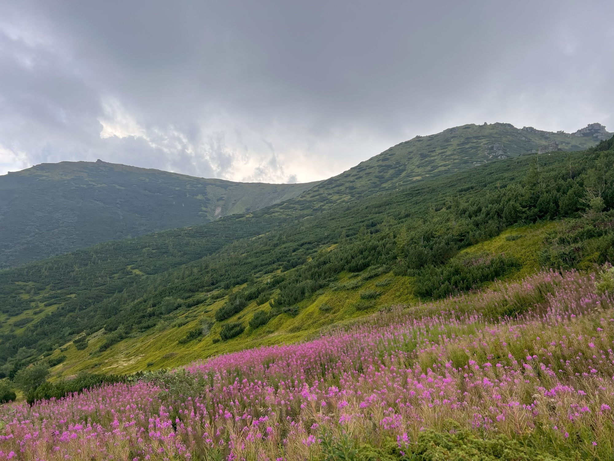 Уютная полонина с прекрасными видами на Черногору. Это удобная точка для ночевки перед восхождением на Поп Иван.