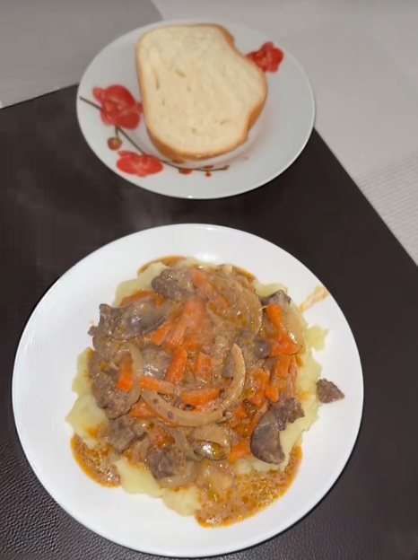 На обед у нее было картофельное пюре с печенью и томатным соком. Ужин был точно такой же, но его дополнили два кусочка шоколада.