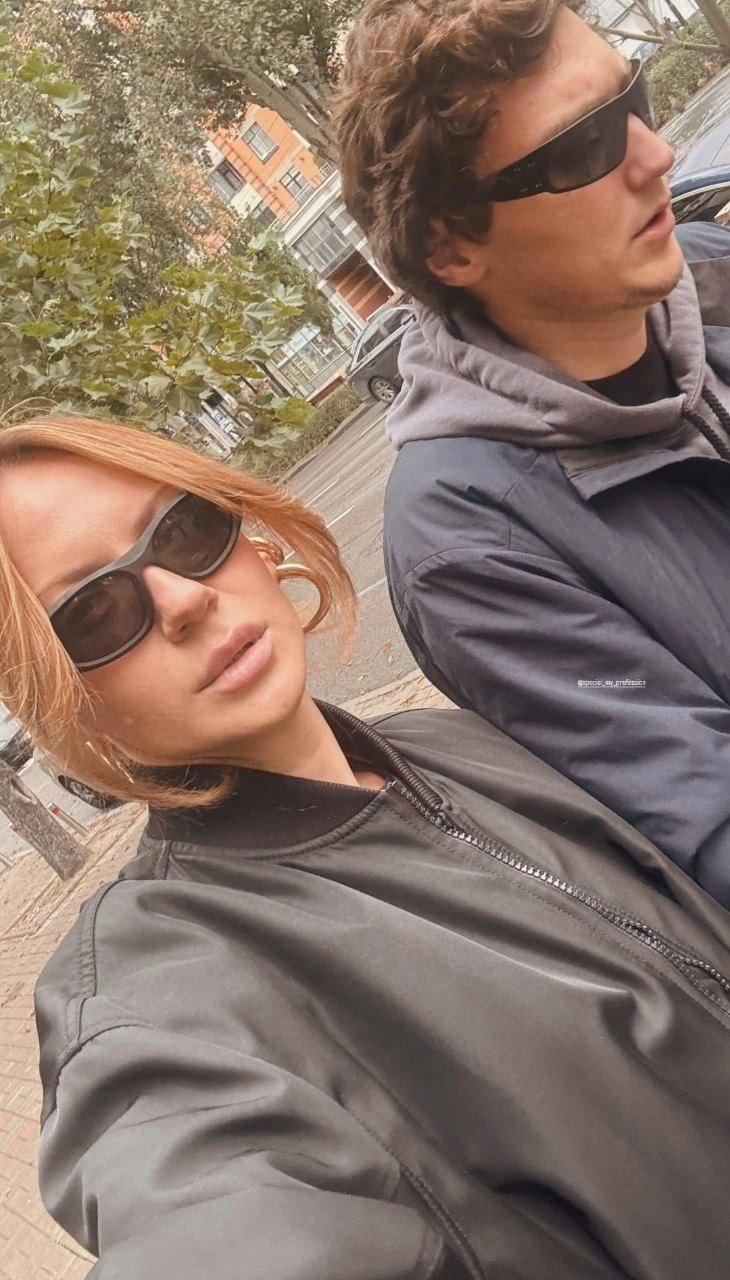 Дмитрий выглядел сдержанно и стильно — в темной куртке, худи и похожих очках, которые создавали ощущение единства между парой.