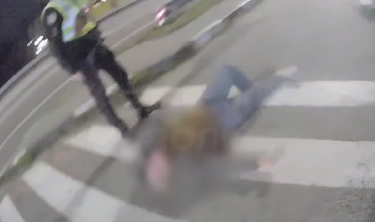 После она спрашивает, куда его везут и ложится на пешеходном переходе. Патрульные отвечают, что его повезли в ТЦК для проверки и предлагают ей сесть в авто, но она говорит, что "презирает их машины". Когда ей пытаются помочь встать с асфальта, Елена кричит в телефон "Маша, они Диму забрали! Делай пост!".