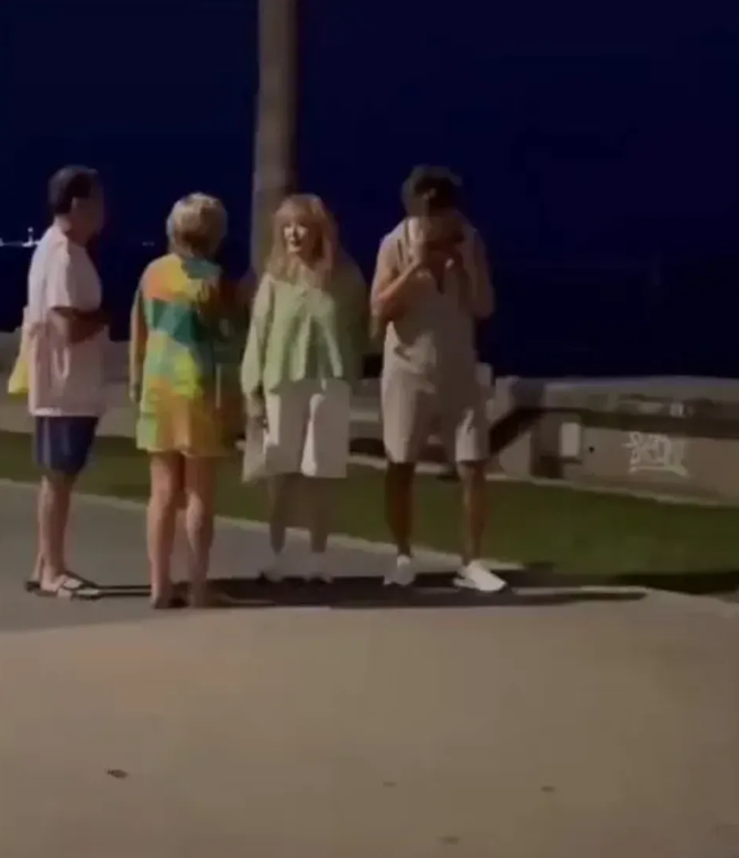 На опубликованных кадрах Алла Пугачева и ее супруг, Максим Галкин, идут по набережной и встречают своих фанатов. Певица здоровается с ними, пока юморист разговаривает с кем-то по телефону. После этого супруги идут вперед.