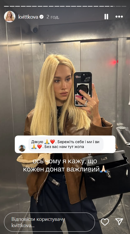 Она поделилась фото из лифта, где внимательные подписчики заметили на ее безымянном пальце кольцо, похожее на свадебное.