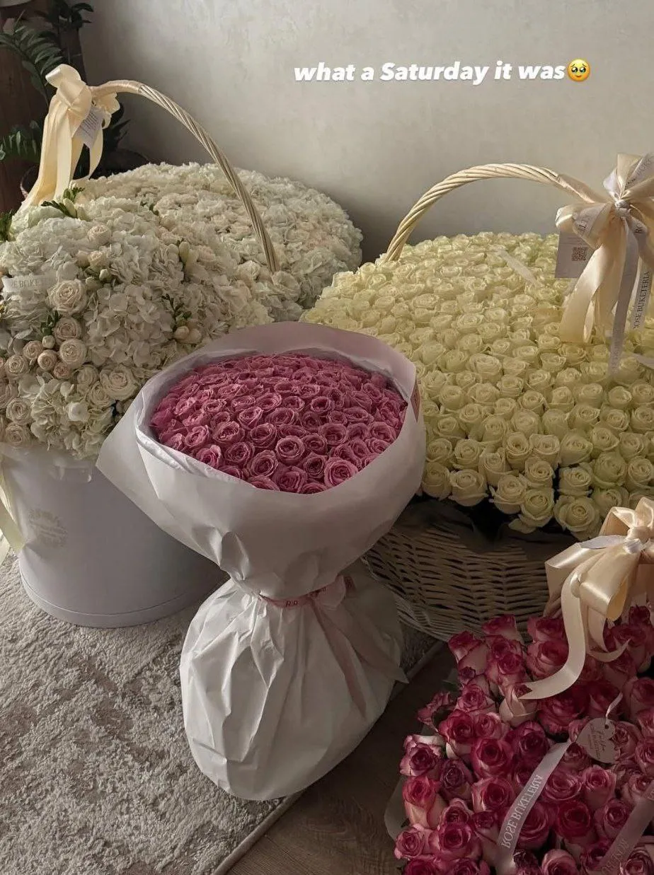 Кроме того, блогер опубликовала фотографию с роскошными букетами цветов и заинтриговала подписью: "Какая же это была суббота".