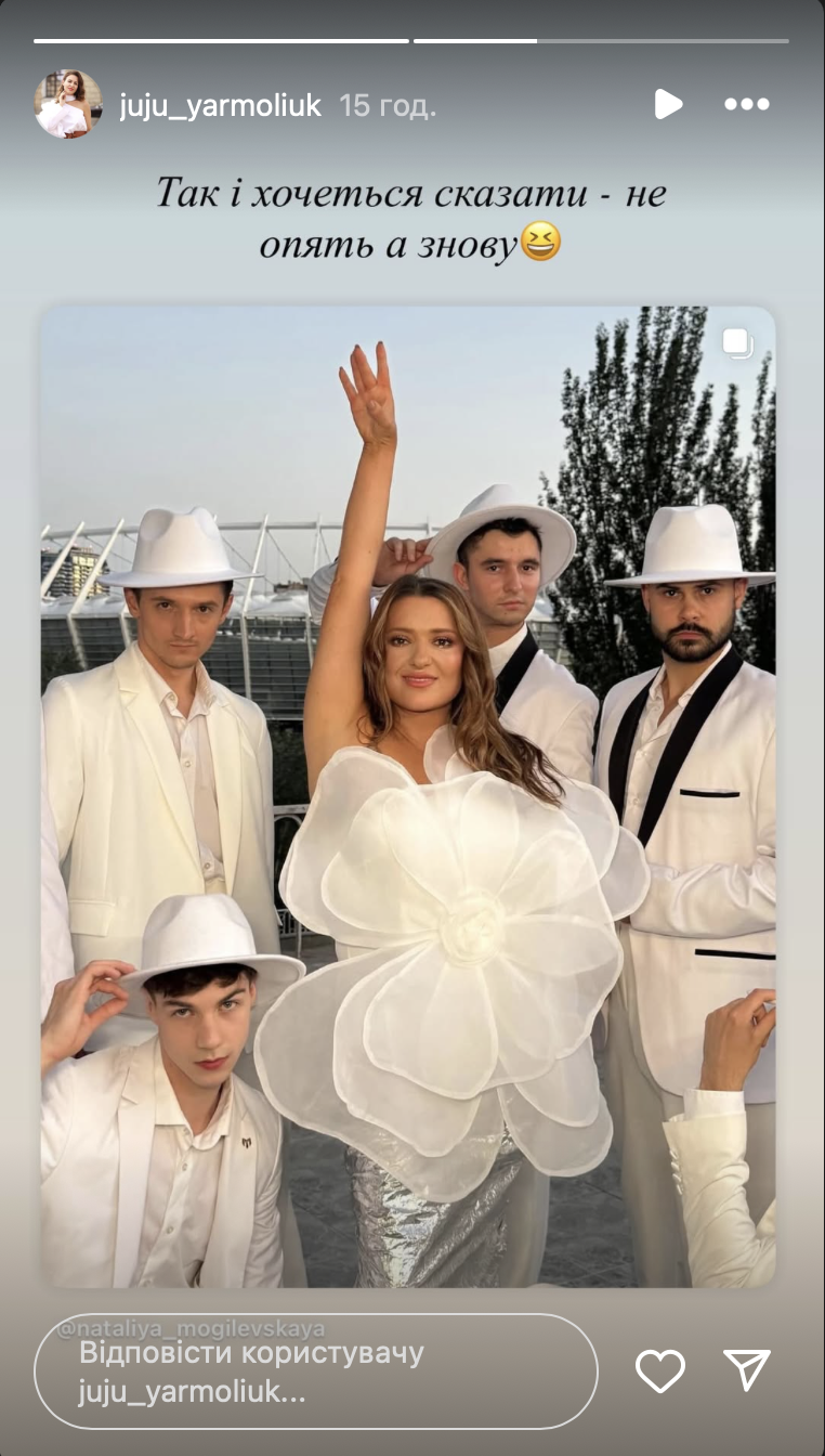 К кадру Юлия Ярмолюк добавила ироничную подпись: "Так и хочется сказать: не опять, а снова".