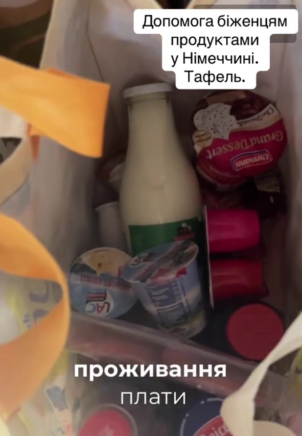 "Скажите мне, пожалуйста, эти все сумки — они из Tafel (немецкая благотворительная организация, созданная для помощи нуждающимся, волонтеры скупают еду, которую не продали в магазинах, и перепродают по более низкой цене — Ред.) Раз в месяц Германия дает помощь продуктами. Как можно не быть благодарными стране за все это?" — задает риторический вопрос автор видео.