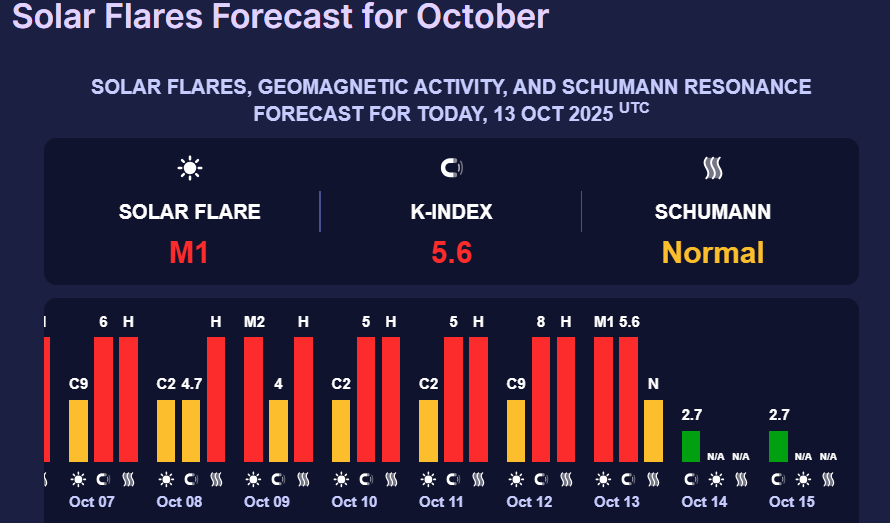 В понедельник, 13 октября, на Земле продолжается магнитный шторм класса G1, который начался еще 10-го.