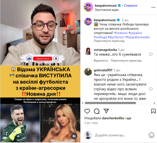 Также Беспалов утверждает, что Светлана Лобода старалась не афишировать свое участие в праздновании — в социальных сетях певицы отсутствует какая-либо информация о выступлении.