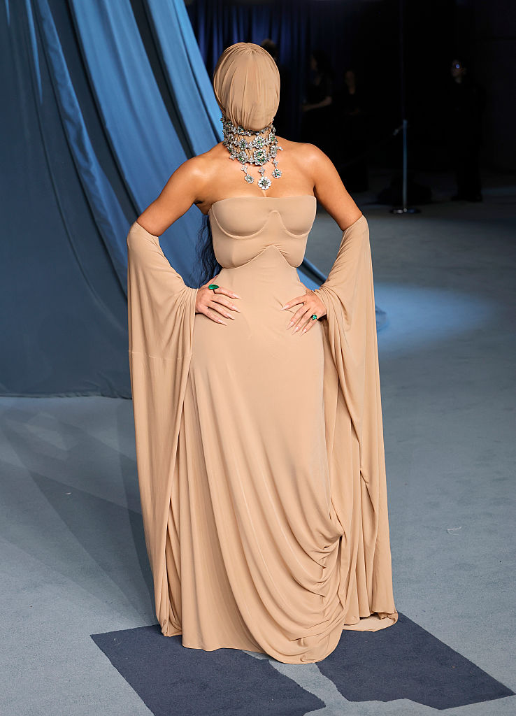 На гала-вечере Academy Museum Gala 2025, который состоялся в субботу вечером, 44-летняя звезда появилась в нюдовом платье от Maison Margiela с корсетом и драпированными рукавами, переходящими в подол. Наибольшее удивление вызвала маска телесного цвета, которая полностью скрыла ее лицо.