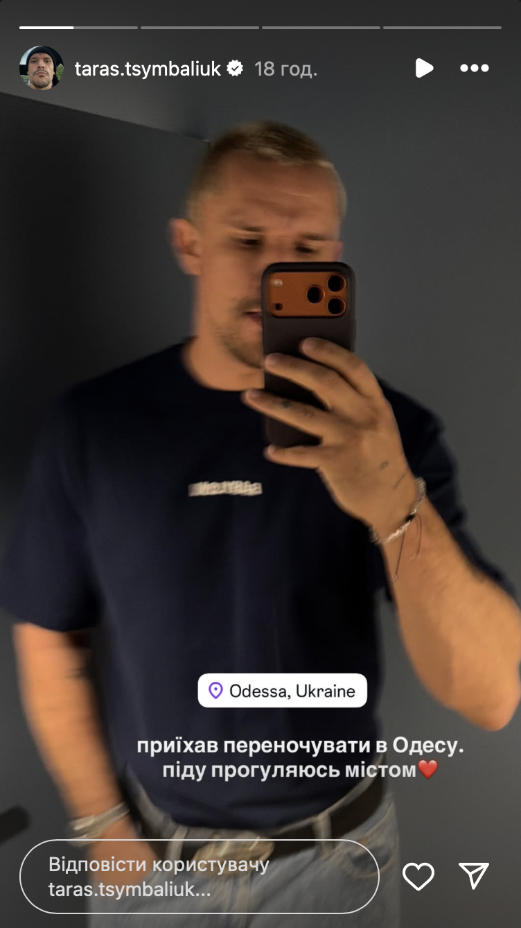 Тарас Цимбалюк признался, что как раз вернулся из командировки и уже находится на территории Украины. Он остановился на ночь в Одессе и сказал, что выйдет на вечернюю прогулку по городу.