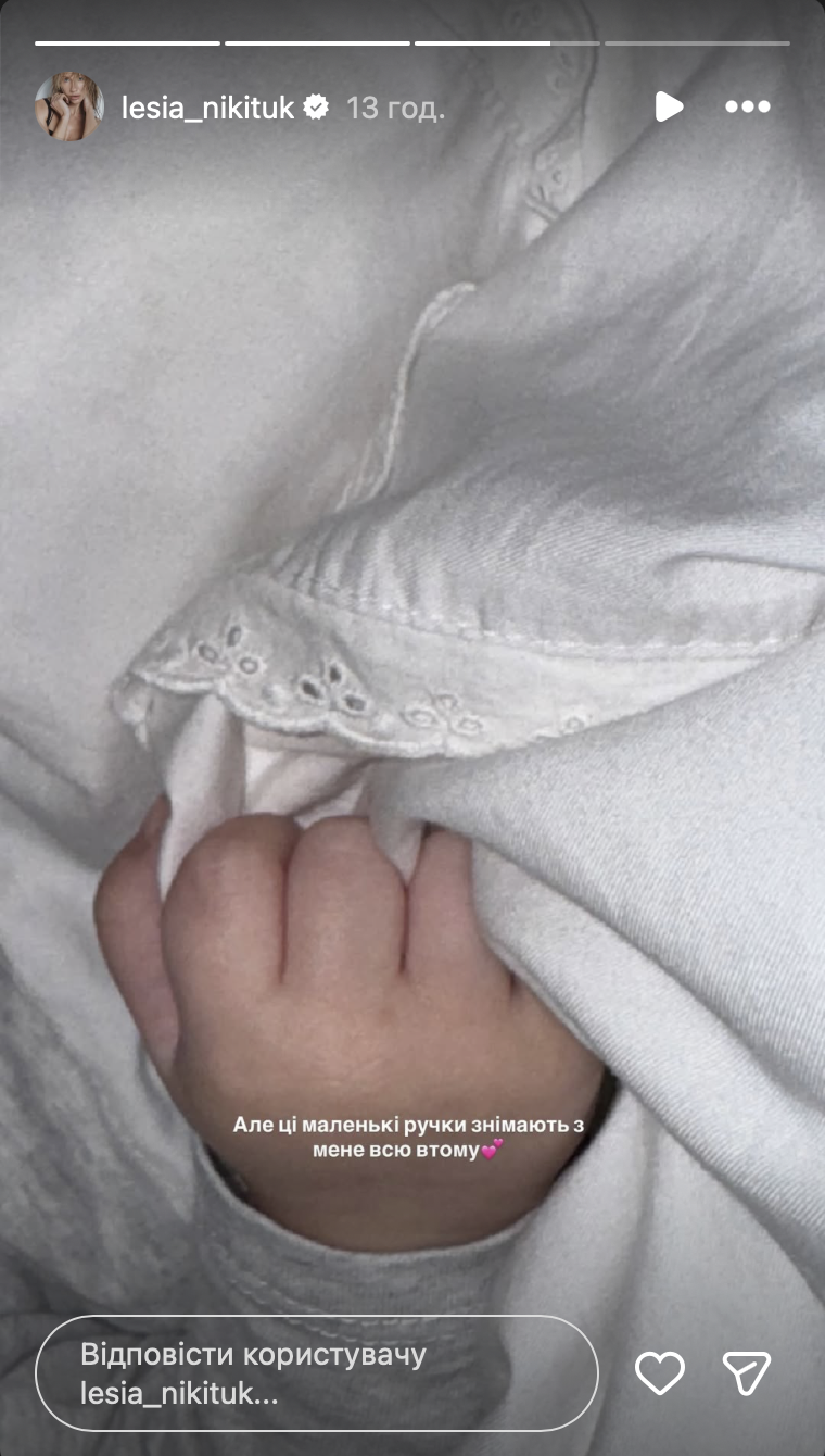 О своих новых отношениях ведущая начала намекать осенью 2024 года. Впоследствии она публично признала, что встречается с военным Дмитрием Бабчуком. В начале 2025 года Леся Никитюк сказала ему "да" в Карпатах. А в июне у пары родился сын, имя и лицо которого они долго скрывали. После крещения ребенка стало известно, что его назвали Оскаром.