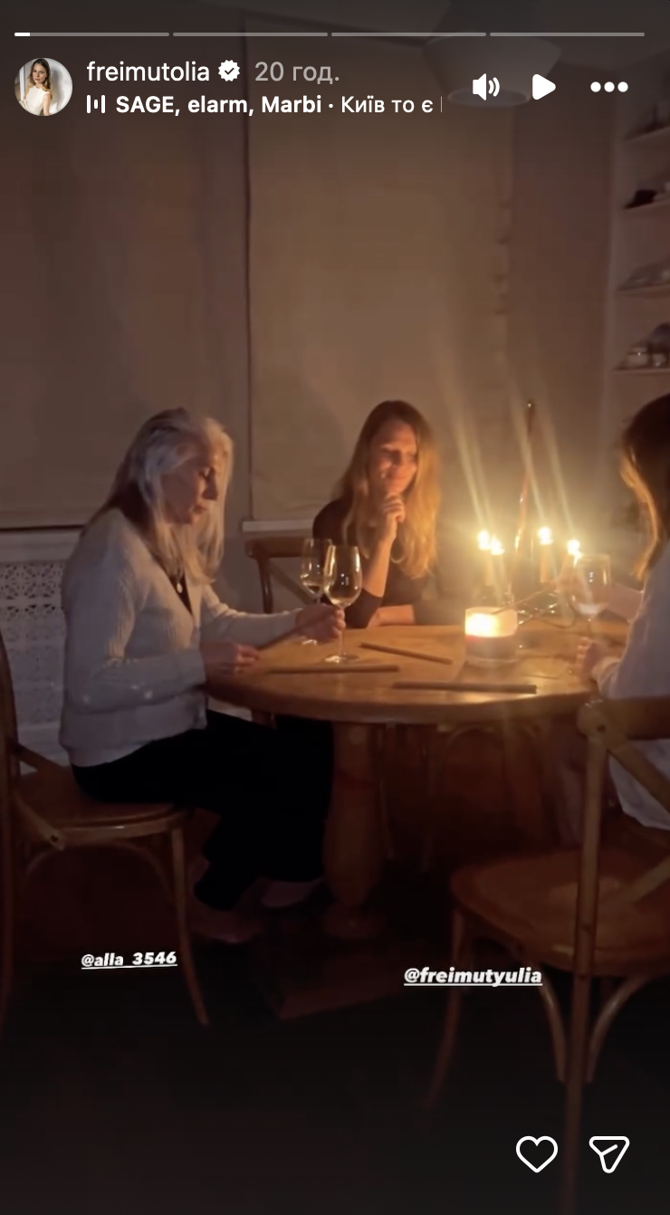 Фреймут последние годы живет в Лондоне. Время от времени она возвращается в Украину. На этот раз звезда экрана встретилась с мамой и родной сестрой. Женщины провели вечер при свечах.