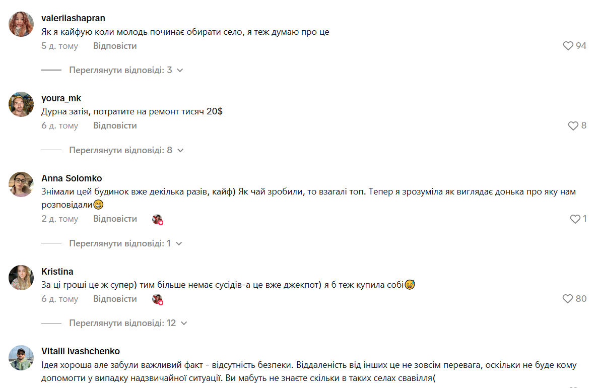 По словам автора, у ее родителей есть дача в селе на Житомирщине, где проживает "от силы человек 10". Они зарабатывают тем, что сдают дом в посуточную аренду. Вдохновленная этим примером, девушка захотела также обзавестись недвижимостью.