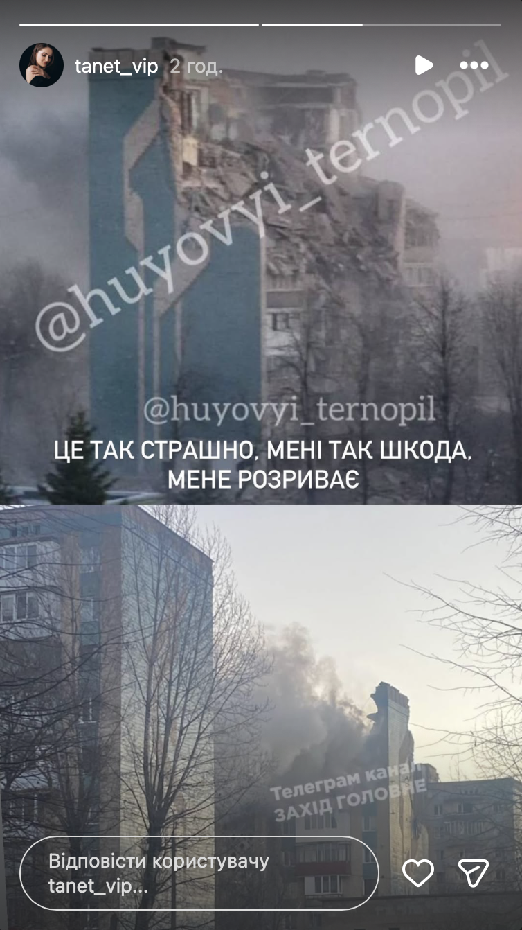 Татьяна Песик показала последствия удара по многоэтажке в Тернополе
