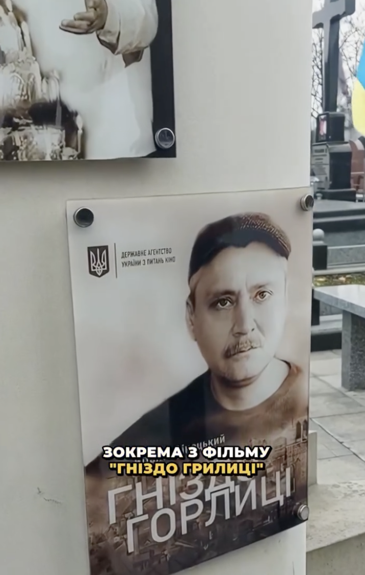 По его словам, это один из самых оригинальных памятников, которые можно увидеть в Украине. Именно так увековечили актера Виталия Линецкого. На надгробии — кадры из его фильмов и театральные афиши, напоминающие о его творчестве, которое затронуло тысячи зрителей. В частности, можно увидеть фильм "Гнездо горлицы".