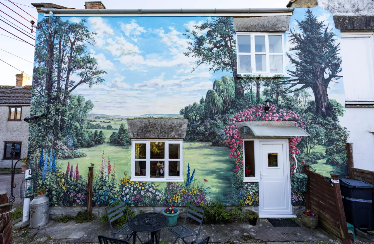 Бывшая работница завода Мюриэл Бейкер заказала художнику роспись своего дома. Теперь на стене красуется красочная фреска с изображением роз, деревьев, птиц и бабочек, которая стала настоящей местной достопримечательностью и вызывает восхищение у всей общины, пишет The Sun.
