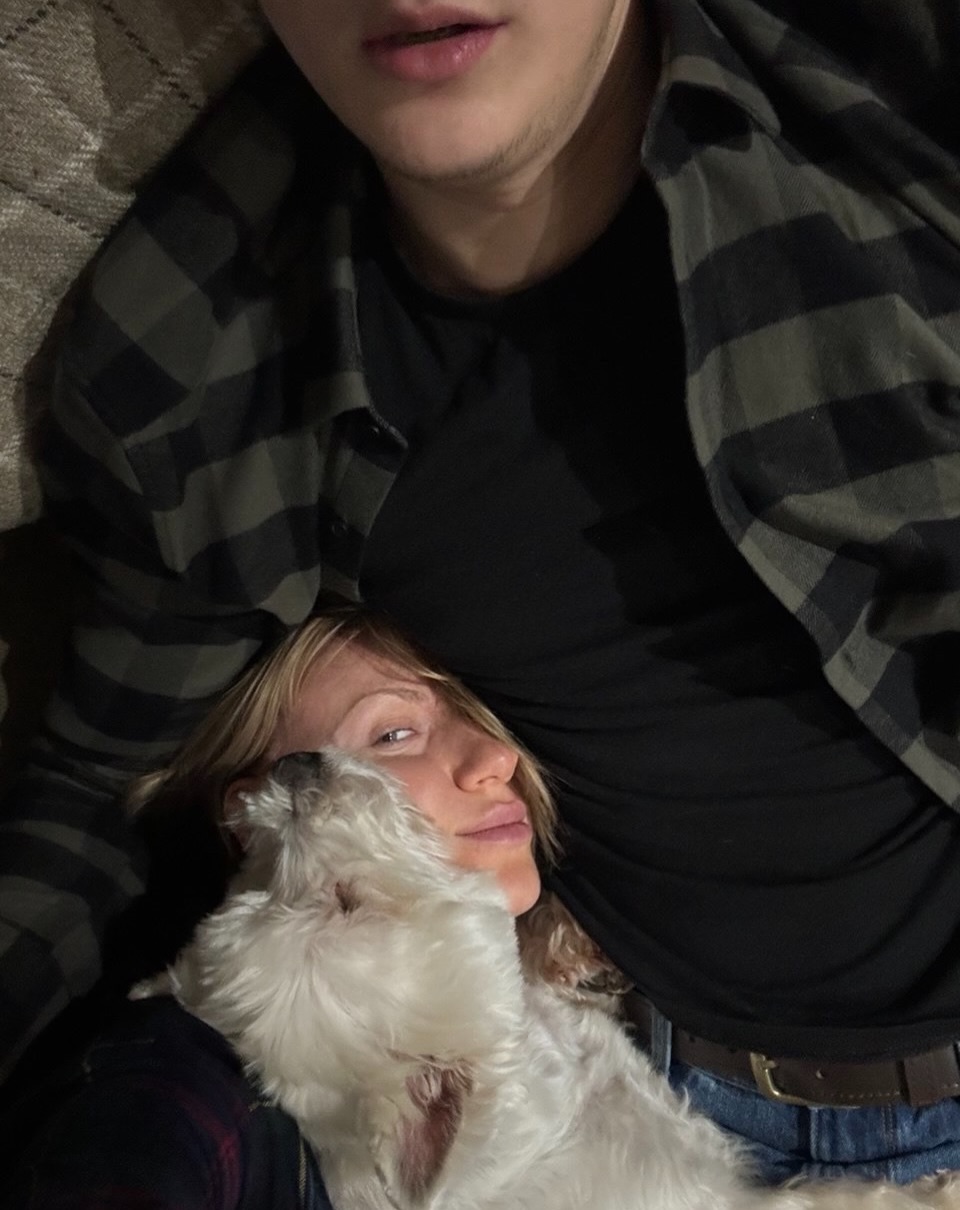 Утром на странице в Instagram он опубликовал подборку фото, среди которых — кадры с Лесей и их маленьким сыном Оскаром, снимок самого Дмитрия с едой, а также трогательное селфи пары вместе с собакой.