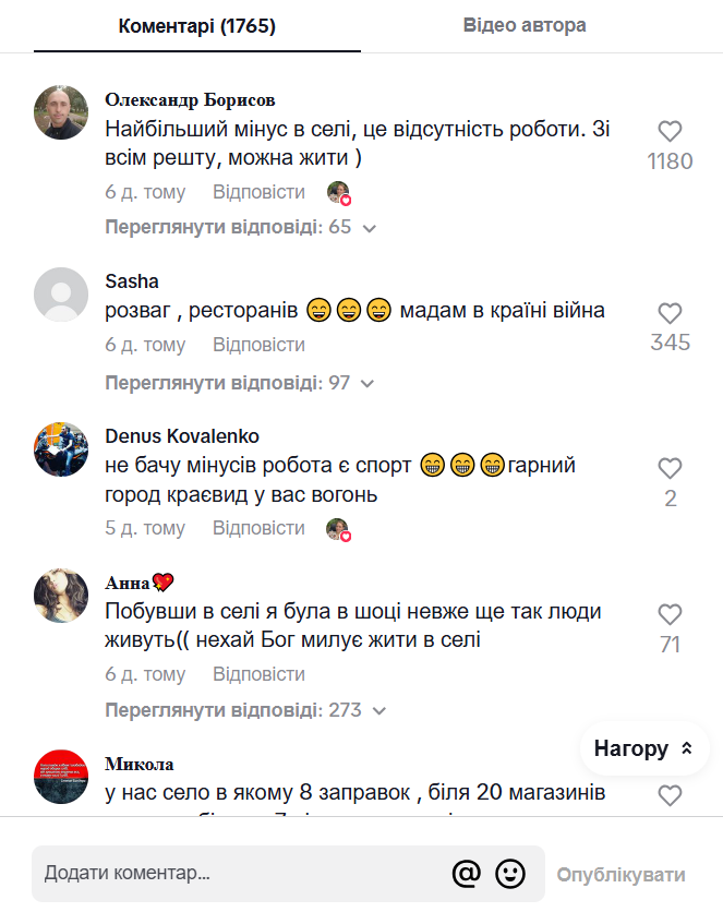 "Самый большой минус в селе — это отсутствие работы. Со всем остальным можно жить", — написал зритель, которого зовут Александр. Пользовательница Анна добавила: "Побывав в селе, я была в шоке. Неужели еще так люди живут? Не дай Бог жить в селе".