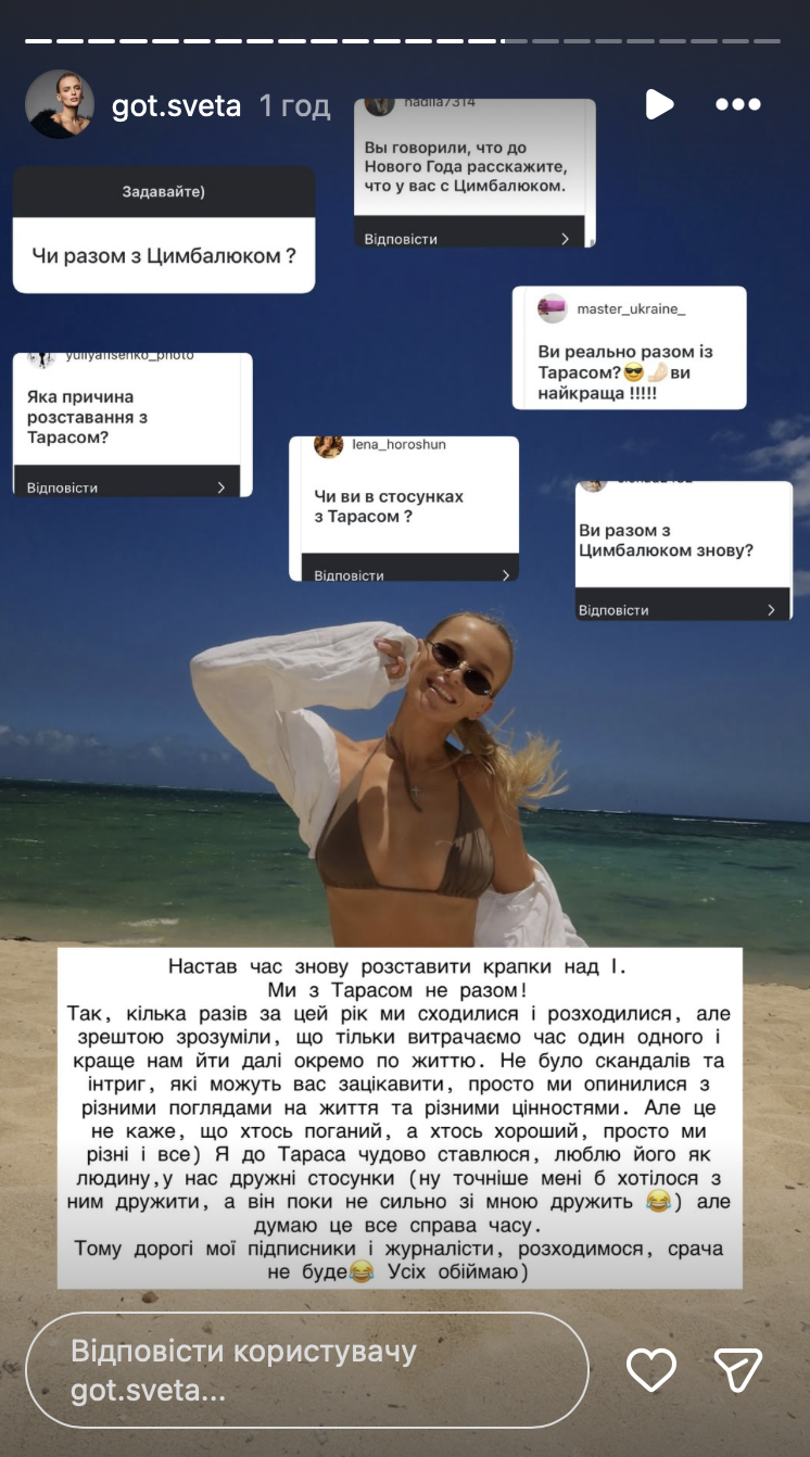 Светлана решила ответить на вопросы подписчиков в Instagram. Многих интересовала ее история с Цимбалюком.