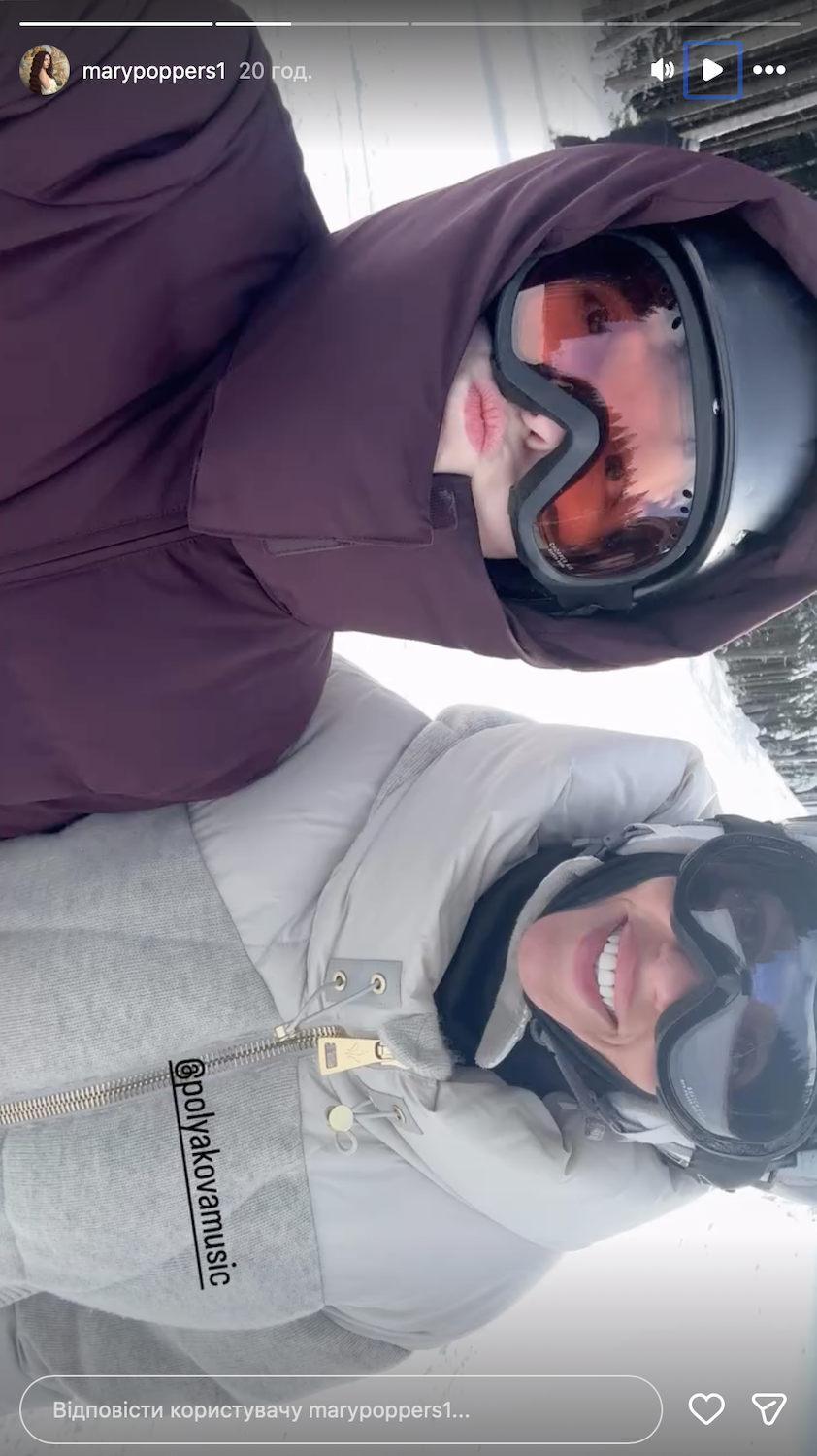 В ролике в Instagram девушка сказала с юмором: "У нас тут семейная идиллия, сериальчик. Считаю, что после лыж это — самое лучшее". Как известно, пара отдыхает на курорте в Карпатах.