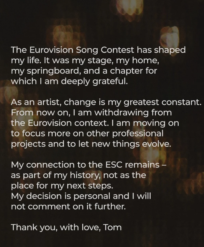 "Моя связь с "Евровидением" остается как часть моей истории, а не как место для моих следующих шагов. Мое решение личное, и я не буду его больше комментировать", — прокомментировала певица.
