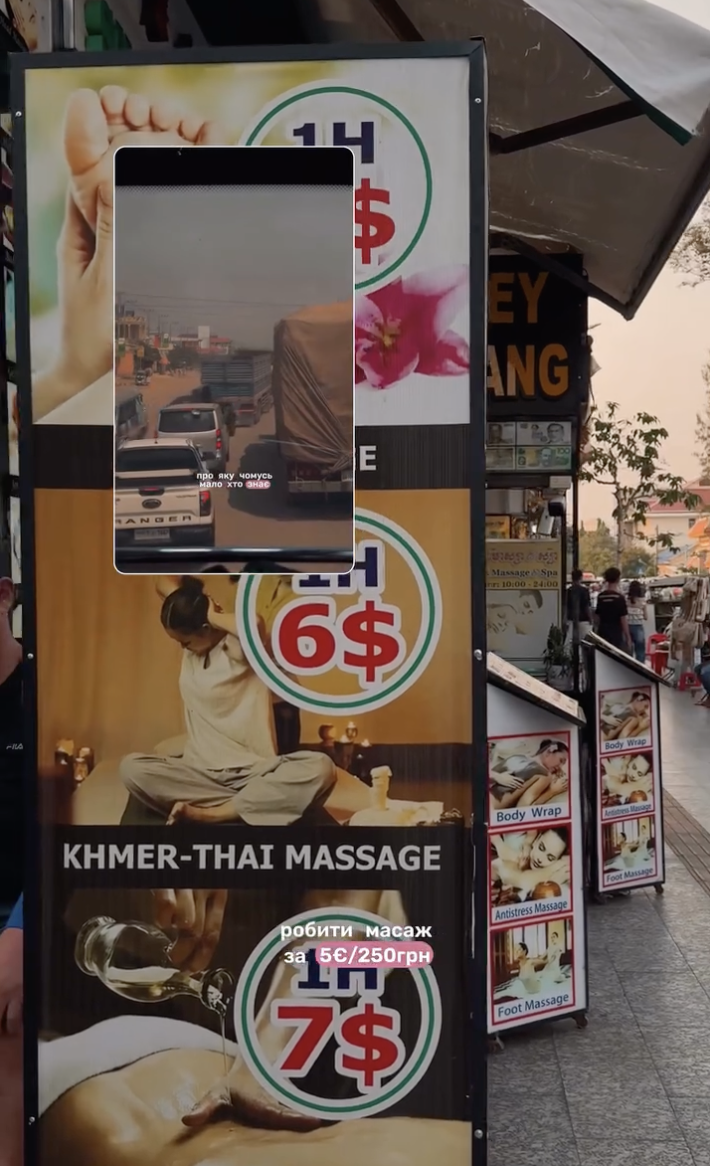 "Камбоджа это как портал в прошлое, потому что где еще можно поесть в кафе за 2 доллара. За один — выпить коктейль. Сделать массаж за 5 долларов, а за 10 даже арендовать здесь-тук с водителем на целый день", — рассказала Ирина.