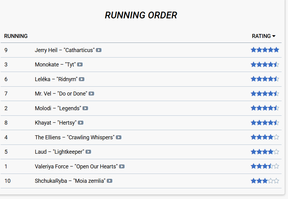 Рейтинг песен украинского Отбора на Евровидение-2026