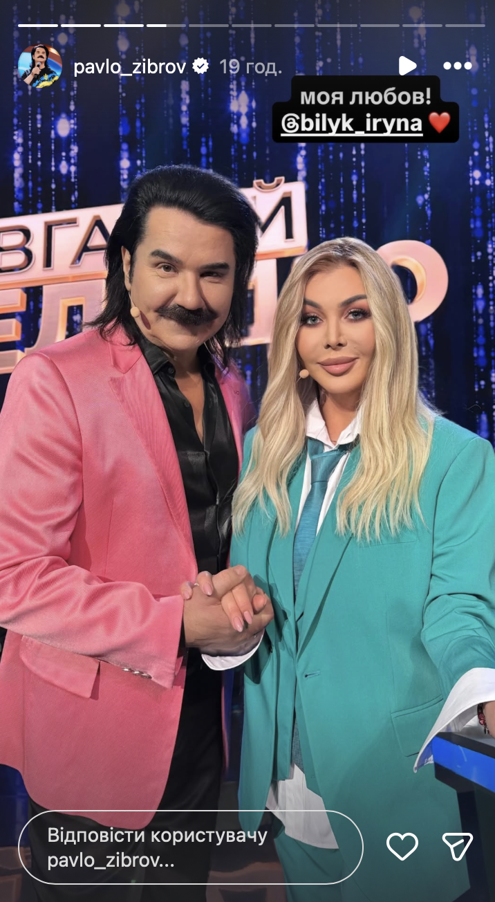 Как известно, Павел Зибров и Ирина Билык давно дружат. Артистка даже часто защищает своего коллегу перед хейтерами.
