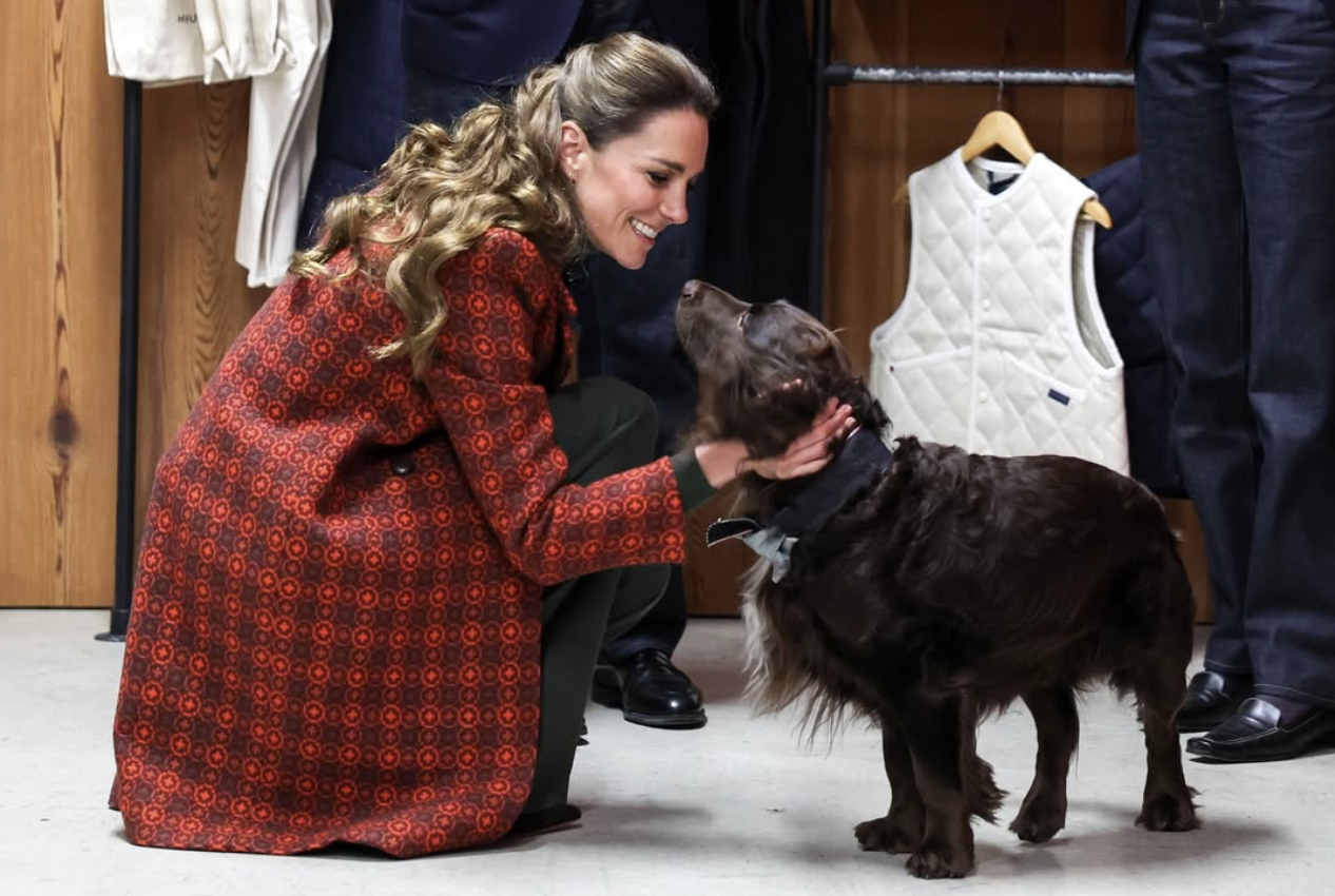 Пока Кэтрин общалась с персоналом, собака владелицы Барни бегал у ее ног, а Кейт нежно поглаживала его, рассказывая о своих домашних любимцах, признавшись, что теперь в семье есть восьмимесячный щенок вместе со старшей собакой Орлой.