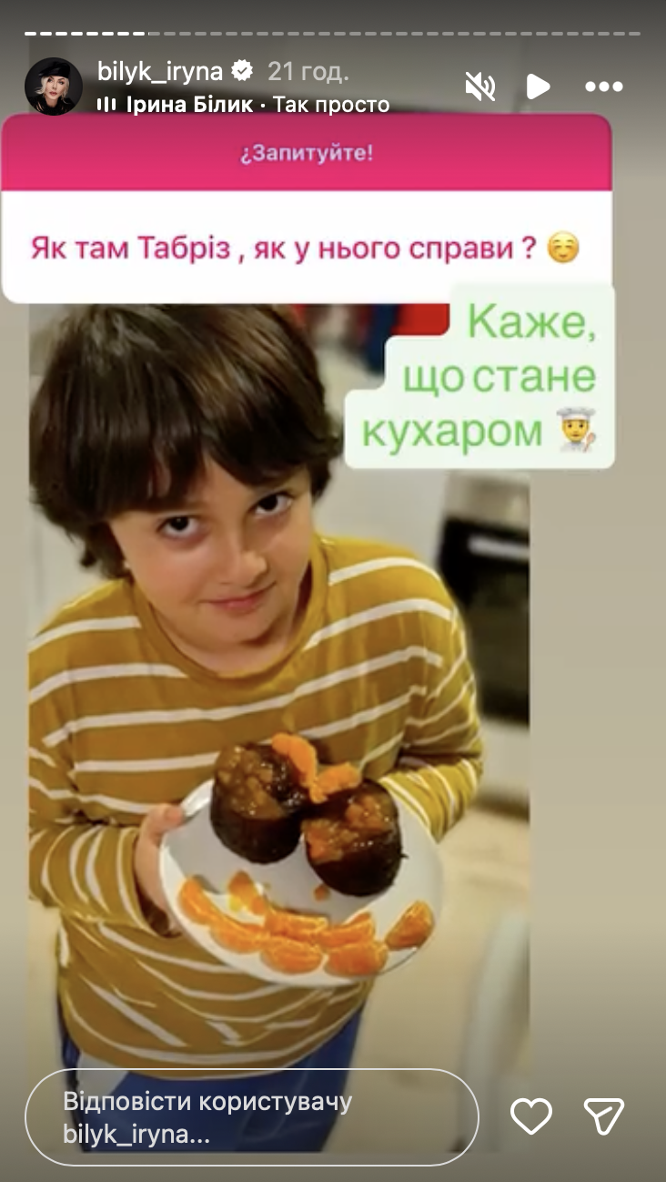 Более того, звездная мама рассекретила хобби сына. Оказывается, Табризу нравится кулинария. Мальчик даже хочет стать поваром. Сын Ирины Билык на камеру показал десерт, который, вероятно, сам и приготовил.