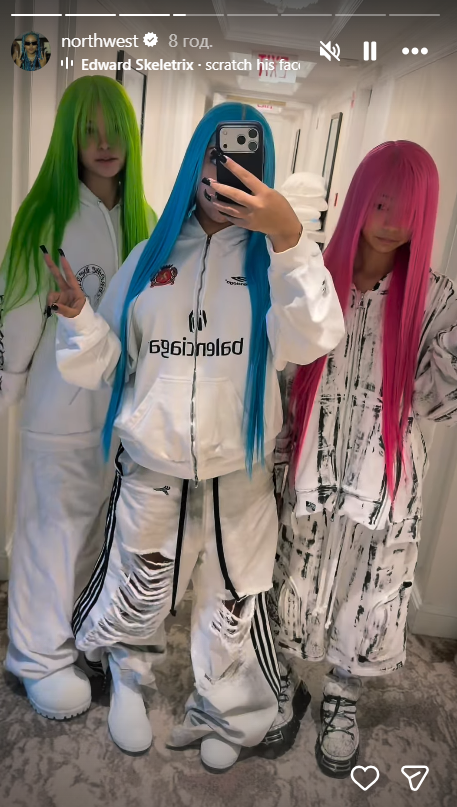 Сама Ким Кардашьян неоднократно позволяла дочери экспериментировать с внешностью и стилем, подчеркивая, что поддерживает творчество и индивидуальность Норт. Ранее девочка уже красила волосы в яркие цвета, появлялась на показах мод и даже выступала на сцене вместе с отцом.