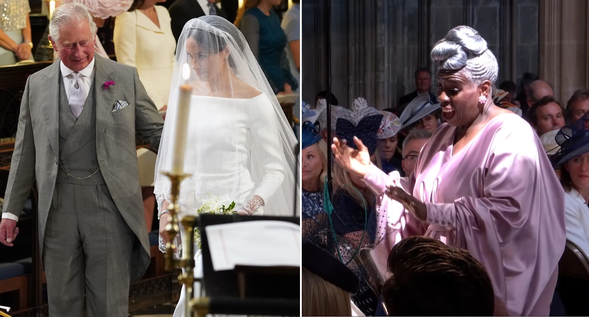 До бракосочетания с Гарри Меган была замужем за американским кинопродюсером Тревором Энгельсоном с 2011 по 2014 год. Другие разведенные королевские особы, такие как королева Камилла и принцесса Анна, решили не носить традиционные фаты или классические белые свадебные платья.
