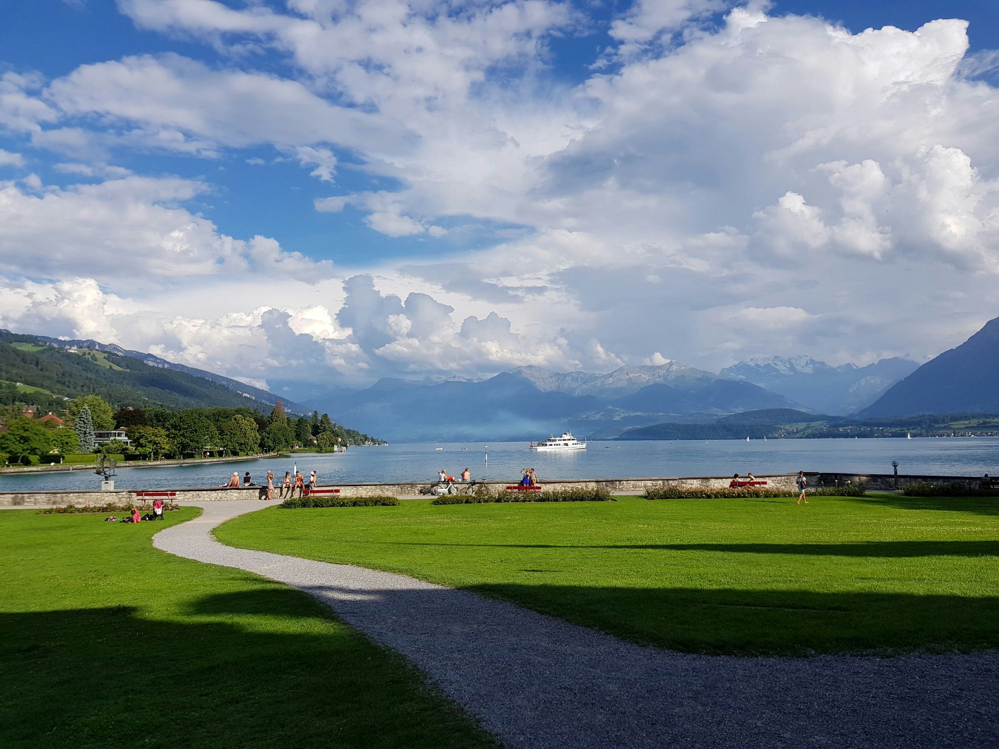 Над городом возвышается белый замок Schloss Thun, который формирует характерный силуэт города. Летом туристы отдыхают на озере, плавают или катаются на сапах.